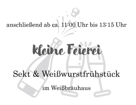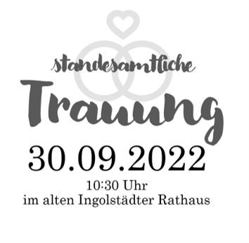 Hiermit laden wir dich herzlich ein zu unserem Standesamttermin am Fr, 30. September um 10:30 Uhr im alten Ingolstädter Rathaus! Anschließenden gibt es Sekt und Weißwurstfrühstück in gemütlicher Runde im Weißbräuhaus in der Dollstraße. Wir würden uns sehr freuen, wenn ihr mit uns das Ja-Wort feiert!